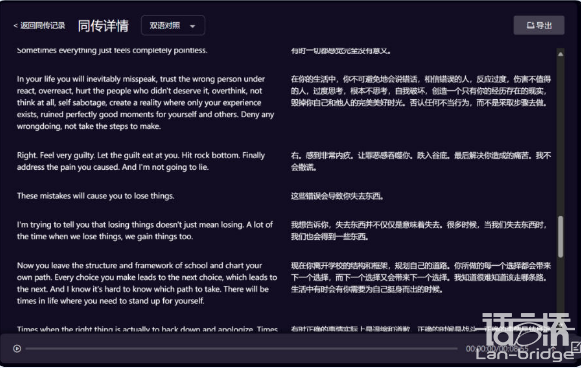 終于支持了分段展示,不用再被大段文字轟炸了!此外,已經完成翻譯的歷史段落和正在同傳的最新一段也做了視覺區分,幫助我們更快定位。