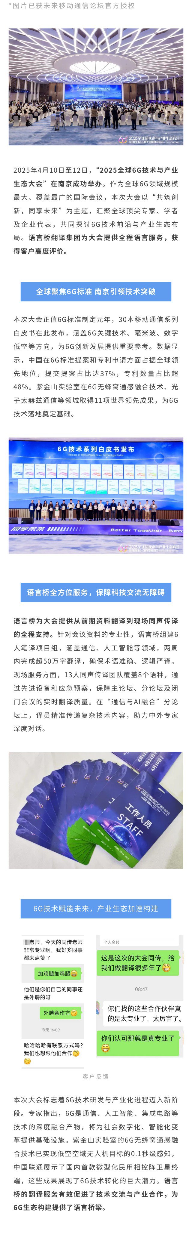 共筑創(chuàng)新,同享未來!語言橋專業(yè)服務助力6G科技盛會