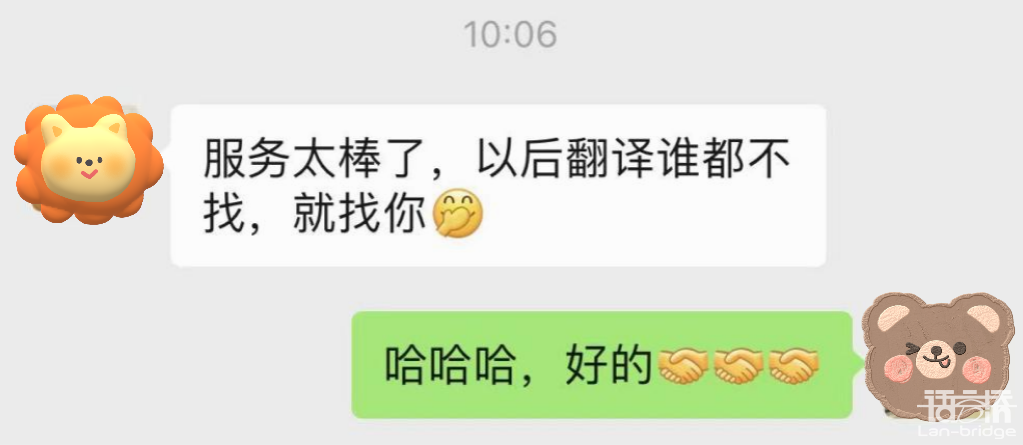 與優(yōu)秀企業(yè)的合作,不只是簡單的商業(yè)往來,更是互利互贏的戰(zhàn)略共生。這些企業(yè)往往對合作伙伴有著高標(biāo)準(zhǔn)、嚴(yán)要求和更高的期待,這就如同高懸的達(dá)摩克利斯之劍,時(shí)刻鞭策著語言橋需要不斷進(jìn)行自我革新,精益求精,專業(yè)化發(fā)展。正是在與這些優(yōu)秀企業(yè)共同成長的過程中,語言橋也鑄造了堅(jiān)實(shí)的市場基石。