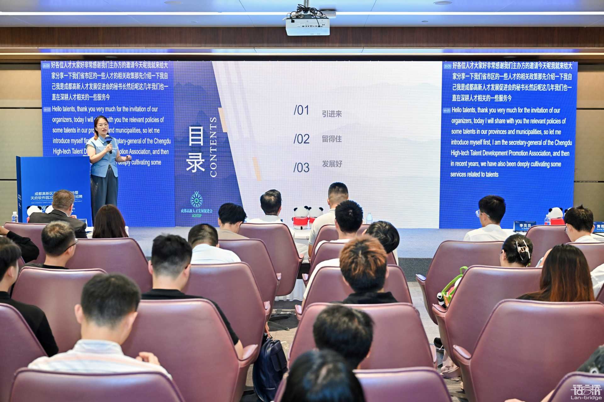 7月24日,2025成都天府軟件園國(guó)際人才招聘會(huì)在中國(guó)-歐洲中心圓滿(mǎn)舉辦。作為深耕語(yǔ)言服務(wù)與跨文化交流的領(lǐng)軍企業(yè),語(yǔ)言橋受邀參與本次招聘會(huì),與20余家名企共同搭建國(guó)際人才對(duì)接平臺(tái),重點(diǎn)關(guān)注海外人才職業(yè)發(fā)展需求,并通過(guò)自主研發(fā)的“數(shù)譯AI同傳”技術(shù)為招聘會(huì)提供實(shí)時(shí)語(yǔ)言支持,助力跨語(yǔ)言溝通無(wú)縫銜接。